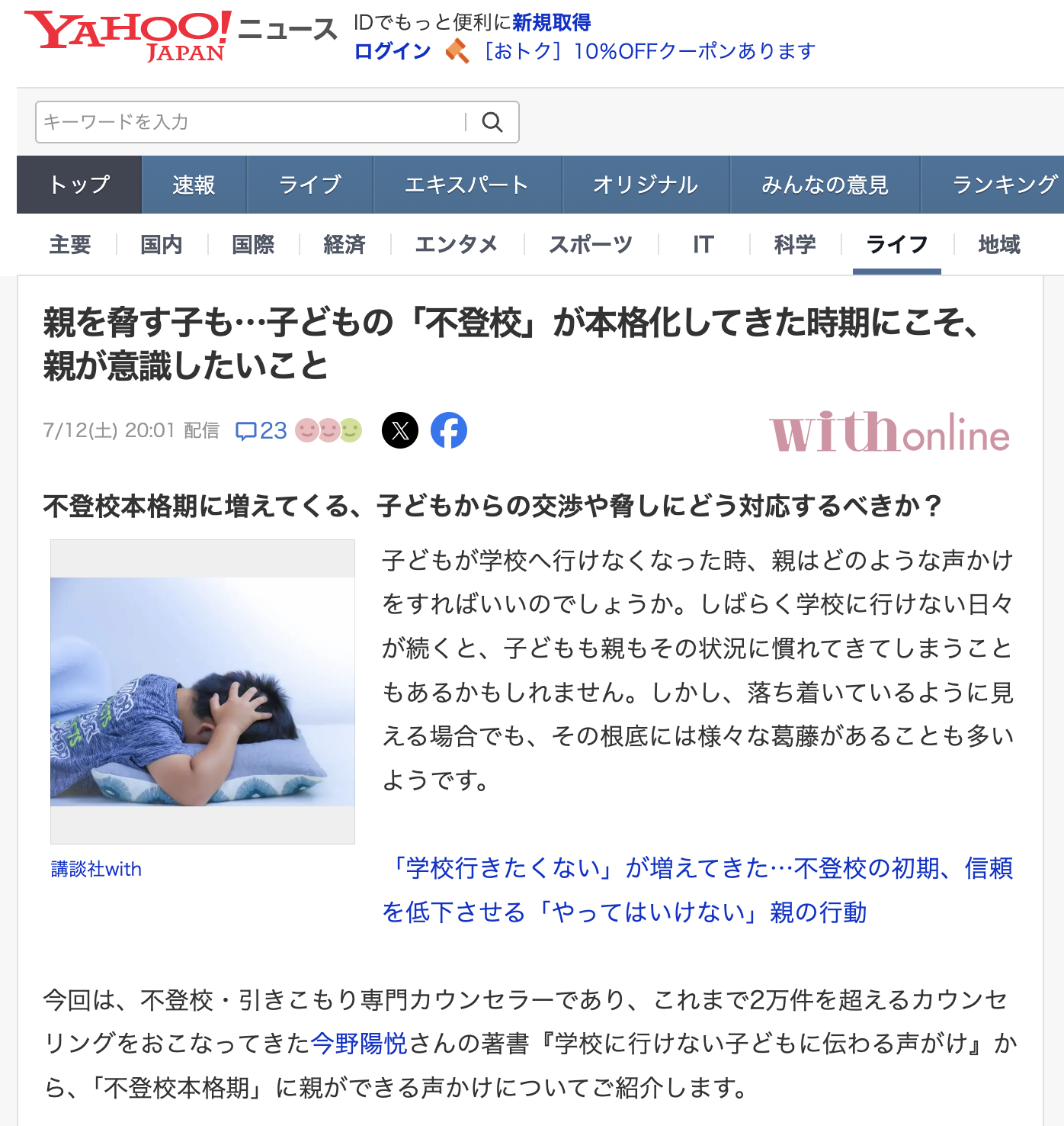 2025年7月12日のYahoo!ニュースに、私の記事が紹介されました。